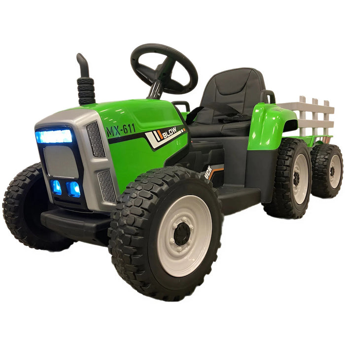 Elektrische Kindertractor 12V Groen + Aanhanger + 2.4G RC